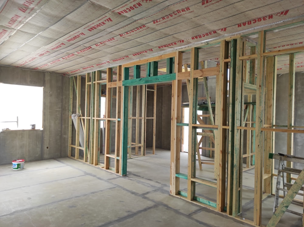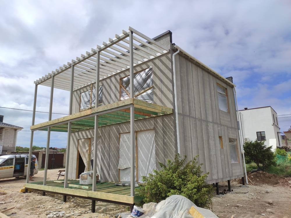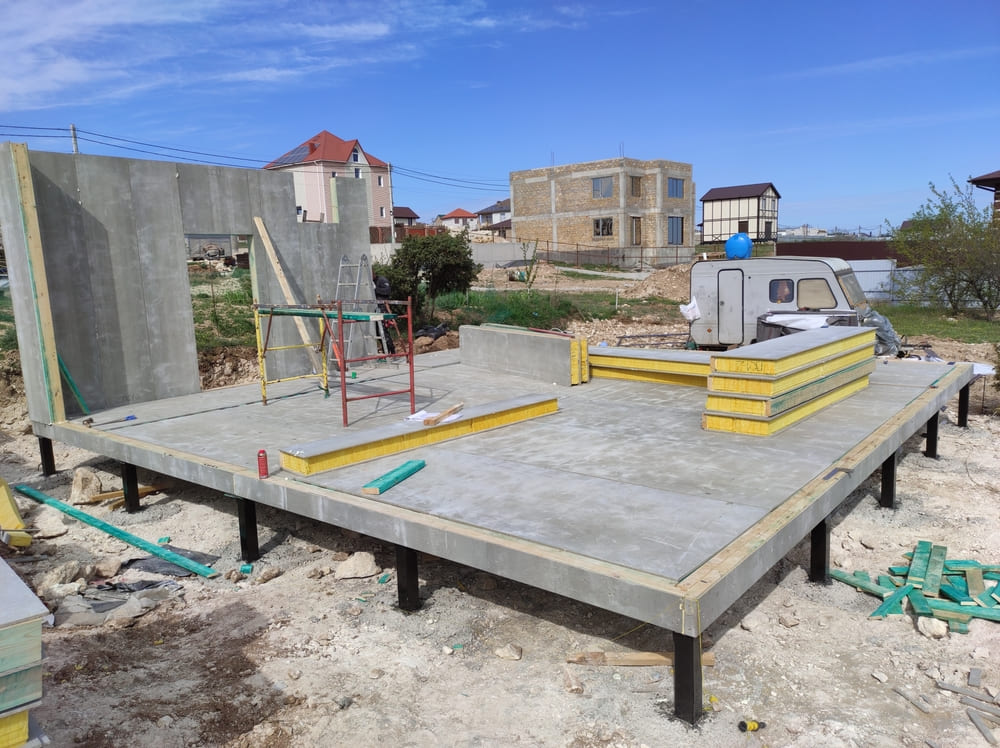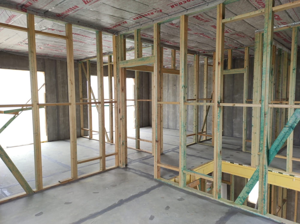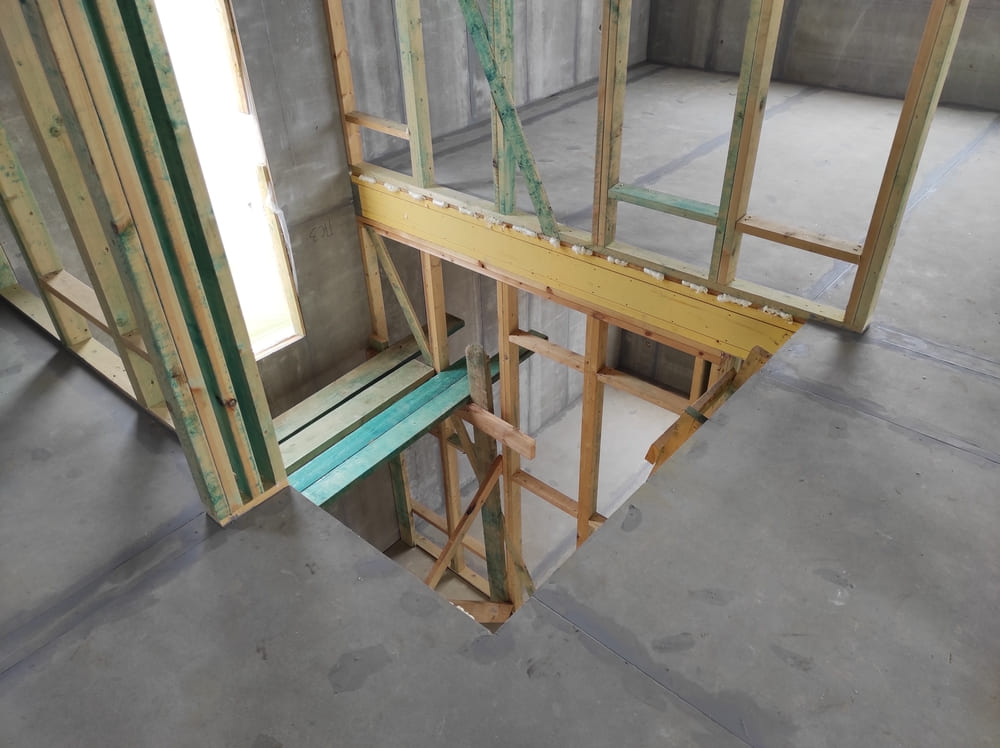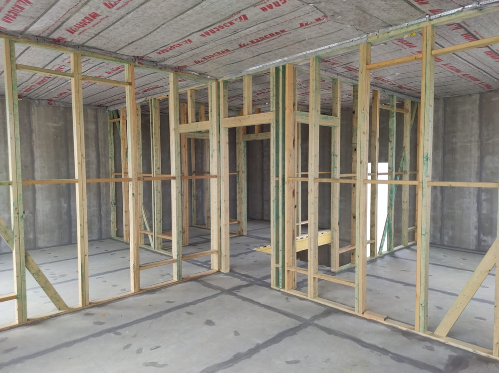 Ростверк изготовлен из калиброванного клееного бруса и защищен снаружи цементно-стружечной плитой