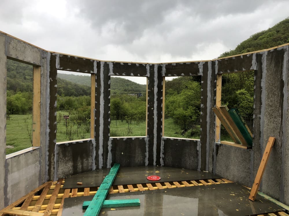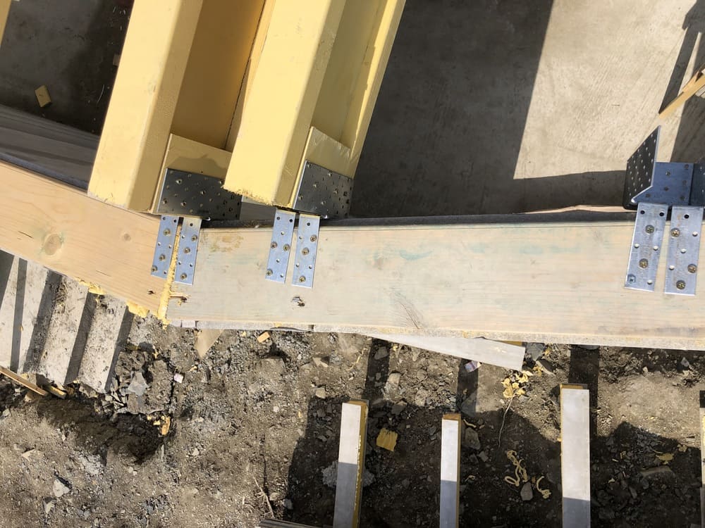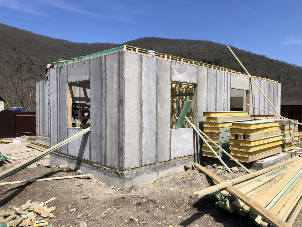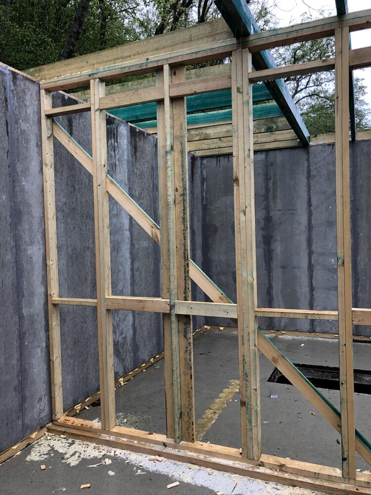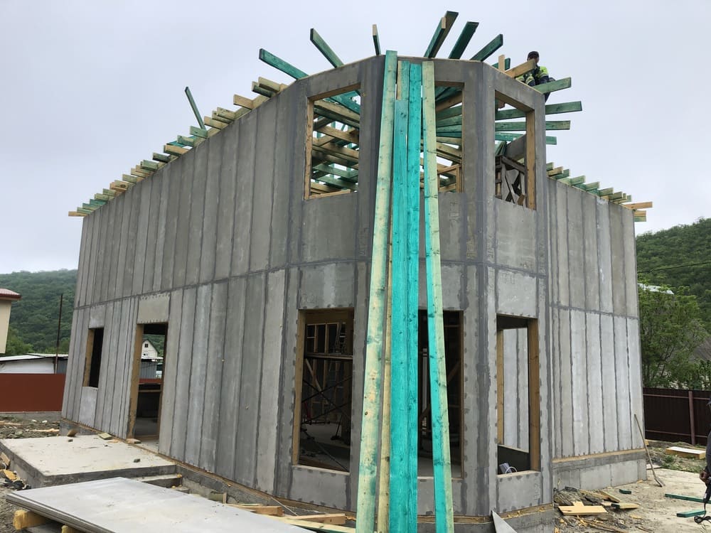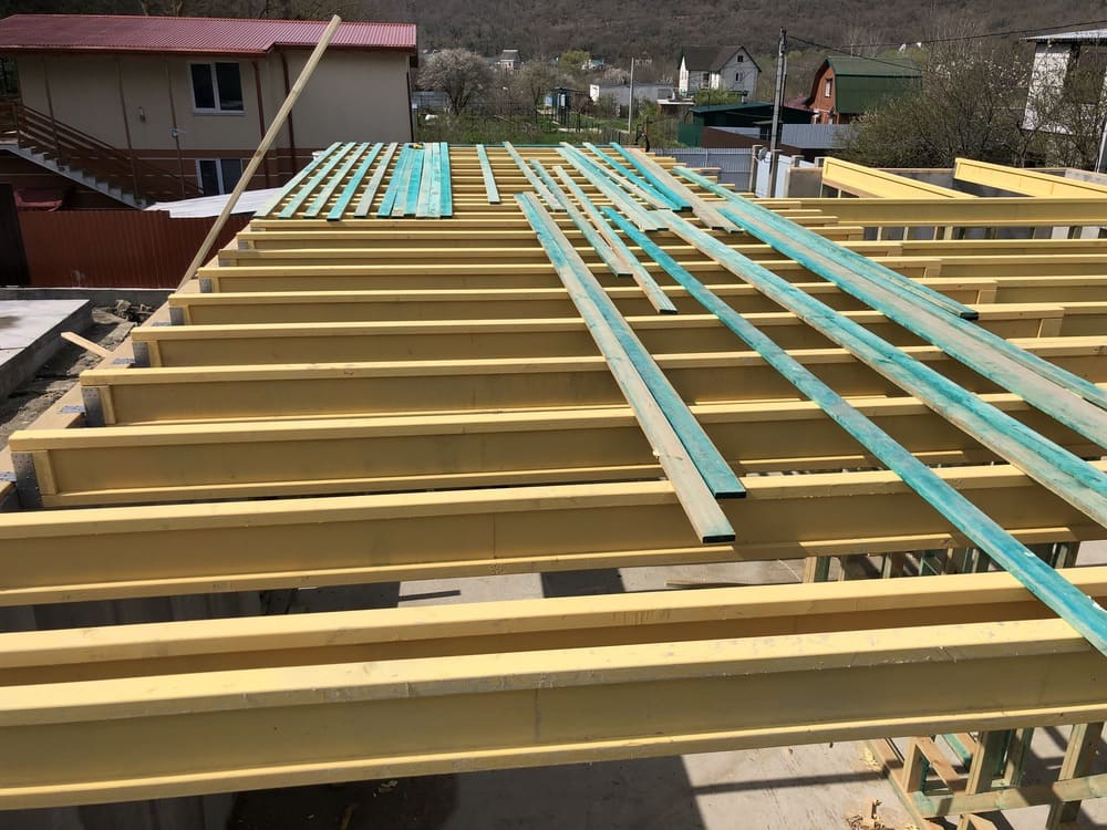 Ростверк изготовлен из калиброванного клееного бруса и защищен снаружи цементно-стружечной плитой
