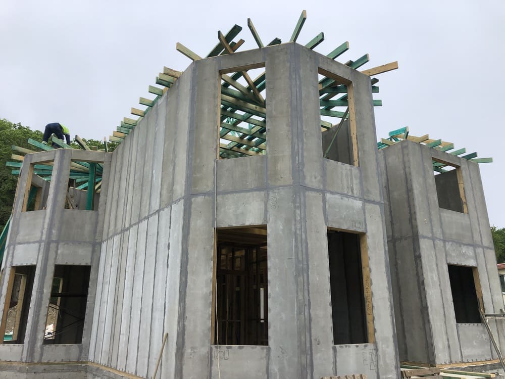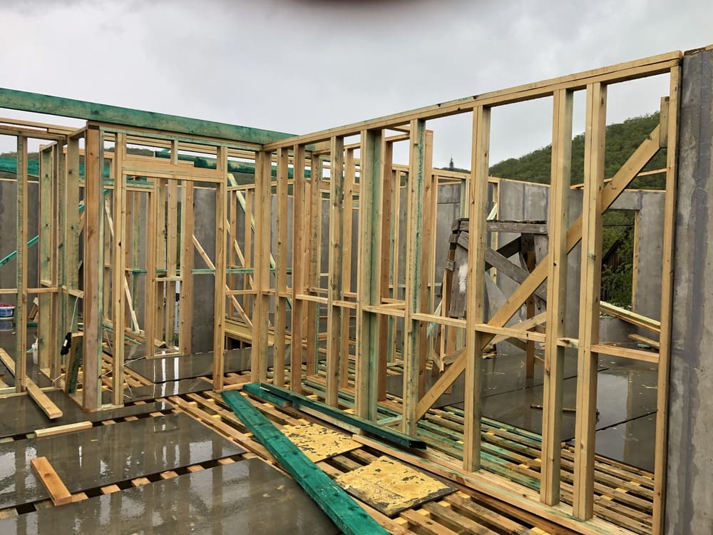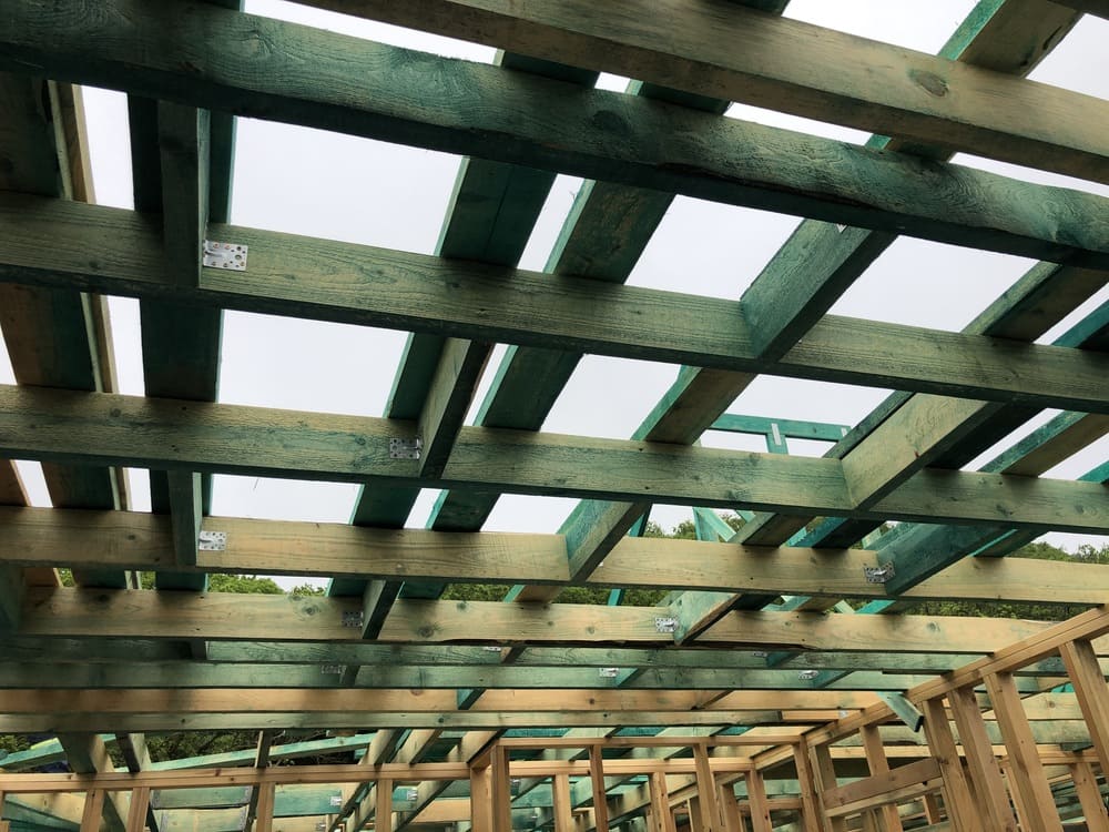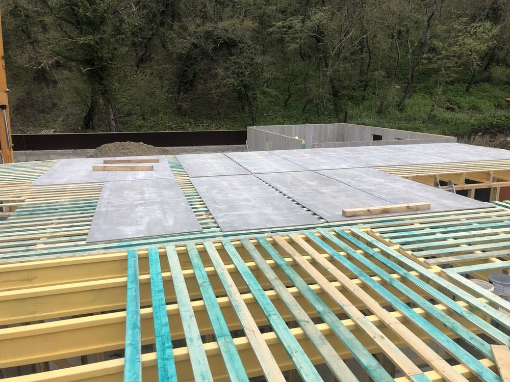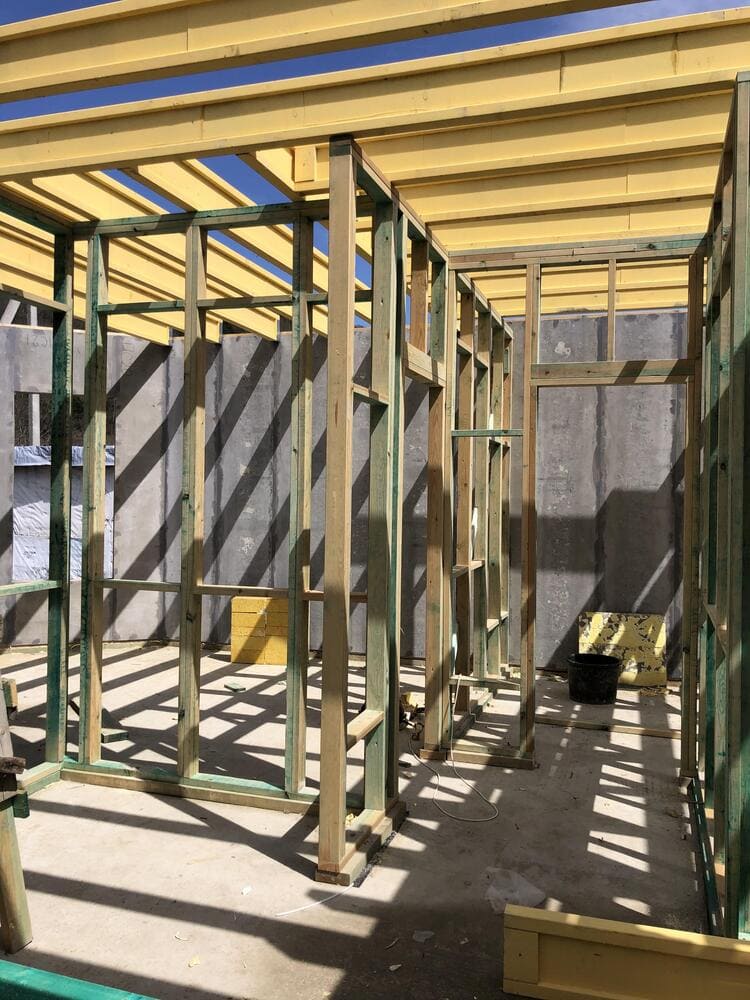 Ростверк изготовлен из калиброванного клееного бруса и защищен снаружи цементно-стружечной плитой
