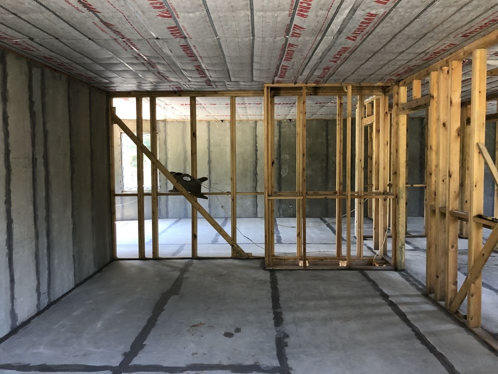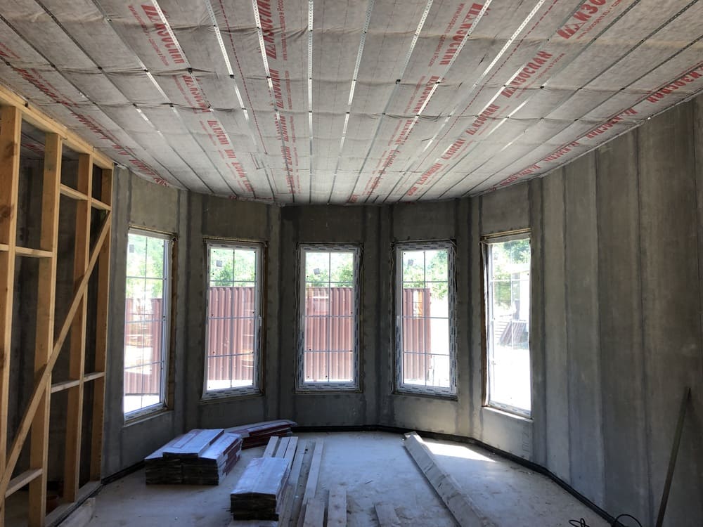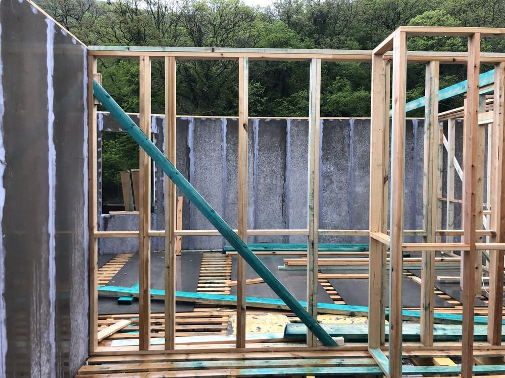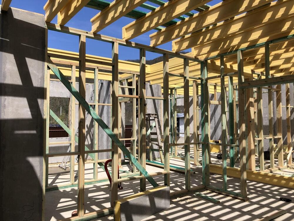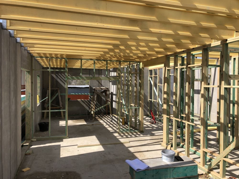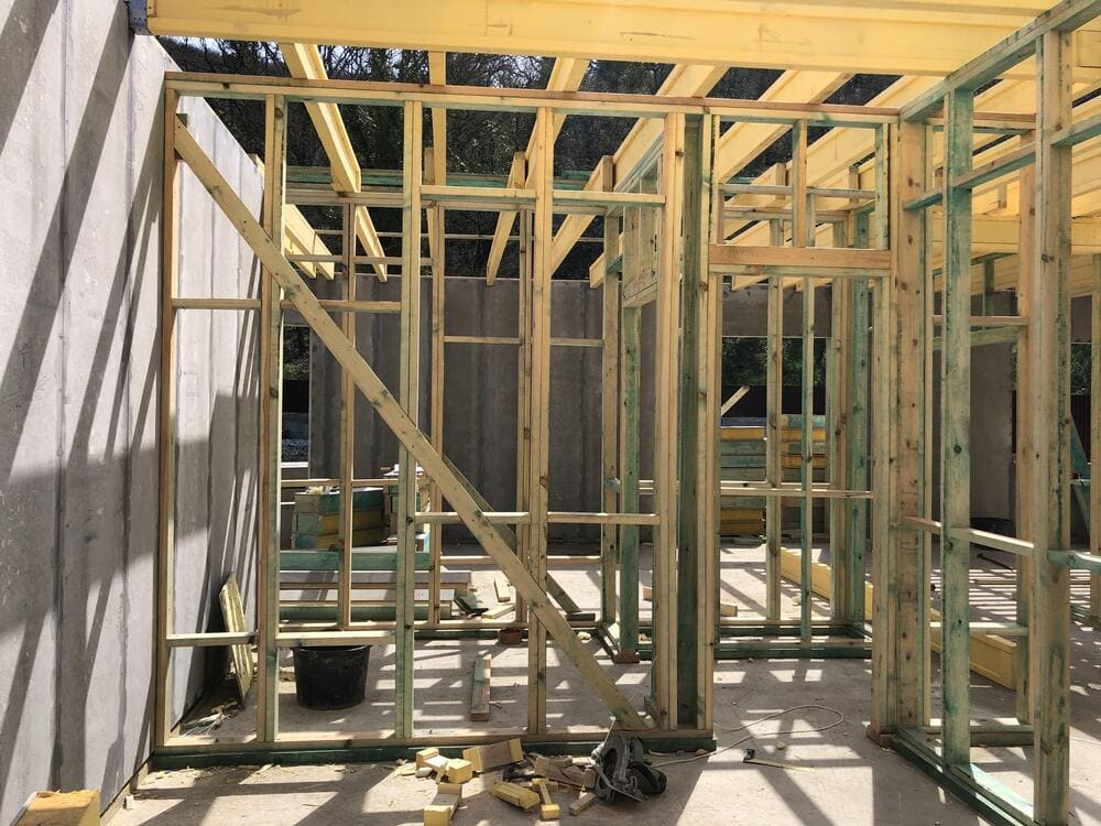 Ростверк изготовлен из калиброванного клееного бруса и защищен снаружи цементно-стружечной плитой