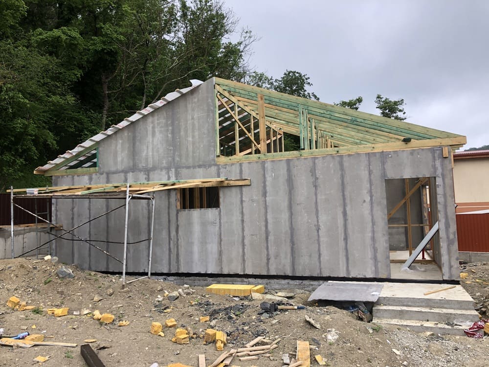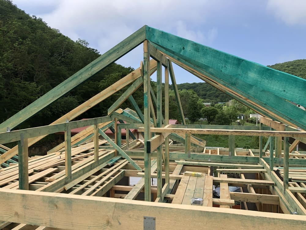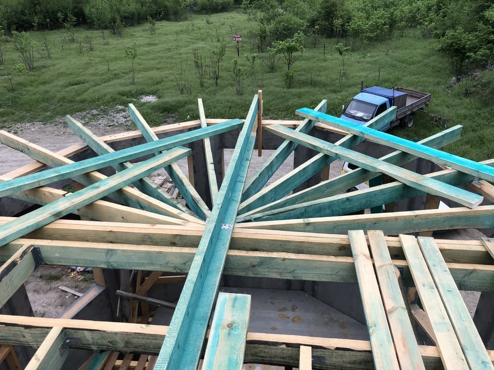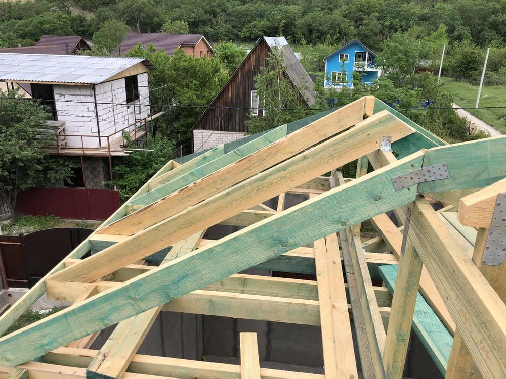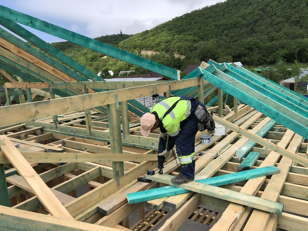 Кровля может быть построена из бруса 150х50мм или SIP панелей. В качестве кровельного материала можно использовать: металлочерепицу, битумную и керамическую черепицу. Также производим кровельные шовные сэндвич-панели.