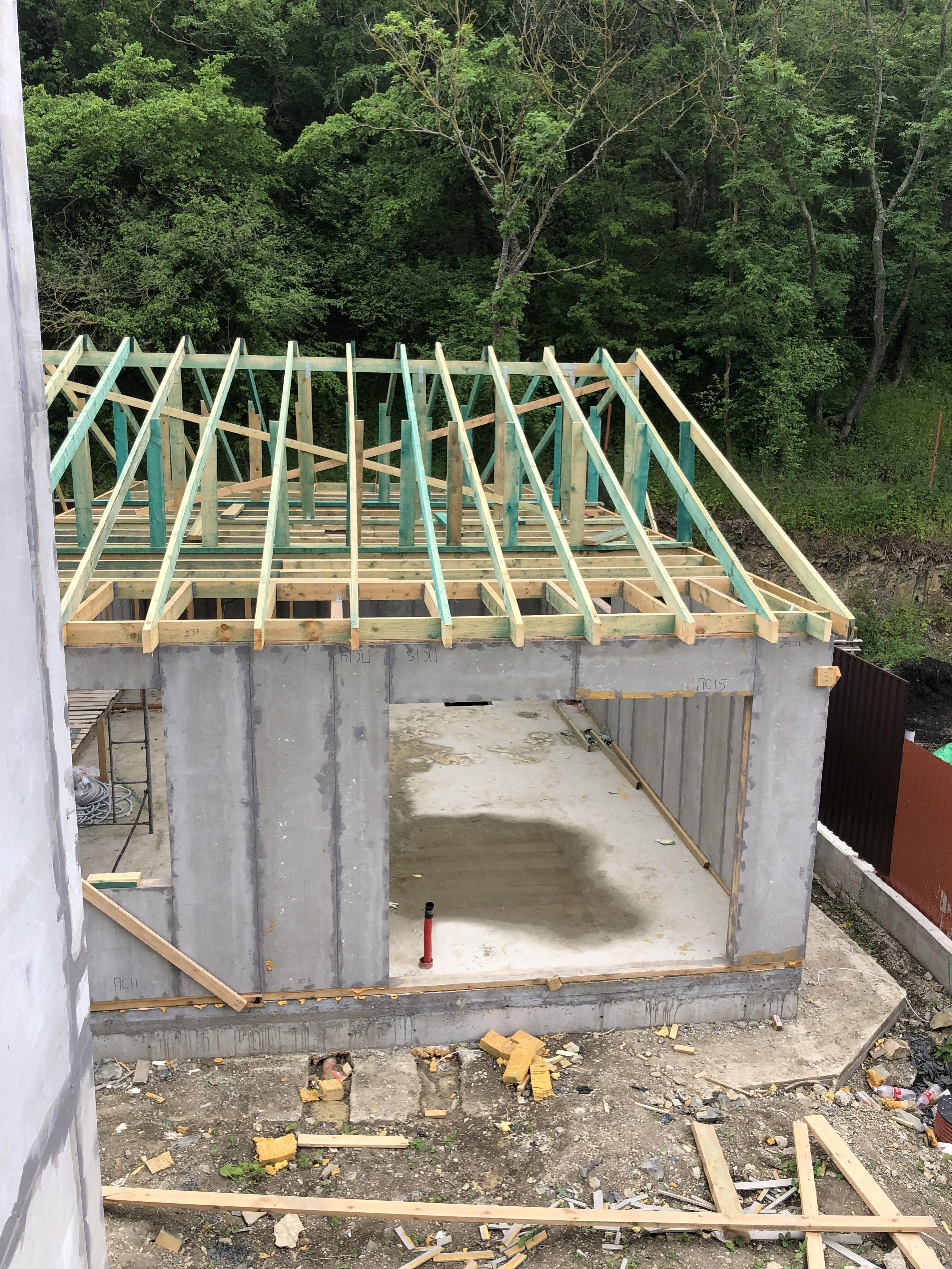 Кровля может быть построена из бруса 150х50мм или SIP панелей. В качестве кровельного материала можно использовать: металлочерепицу, битумную и керамическую черепицу. Также производим кровельные шовные сэндвич-панели.