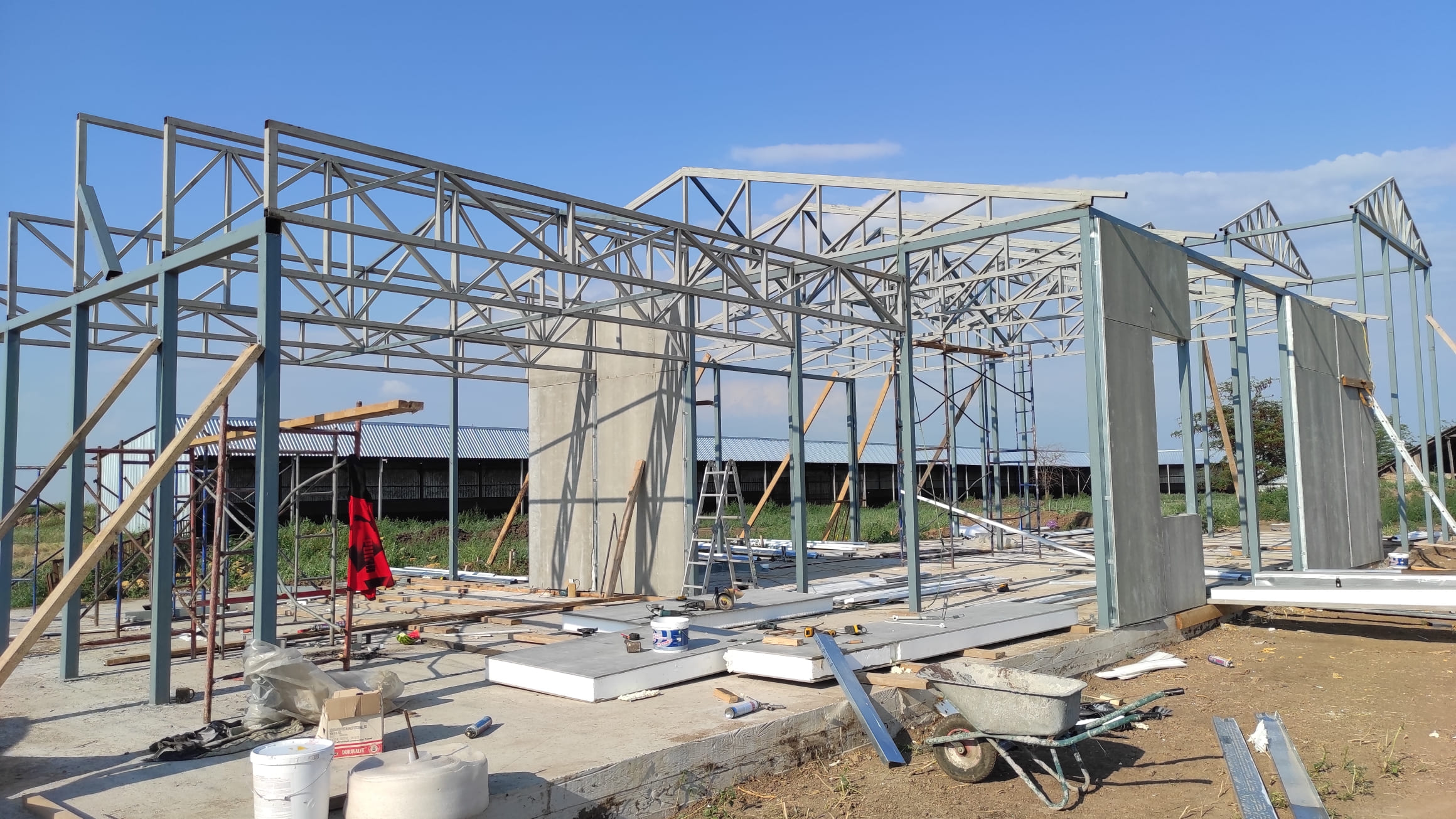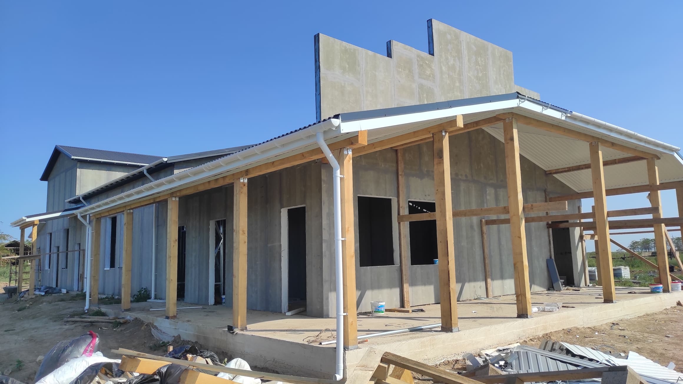Ростверк изготовлен из калиброванного клееного бруса и защищен снаружи цементно-стружечной плитой