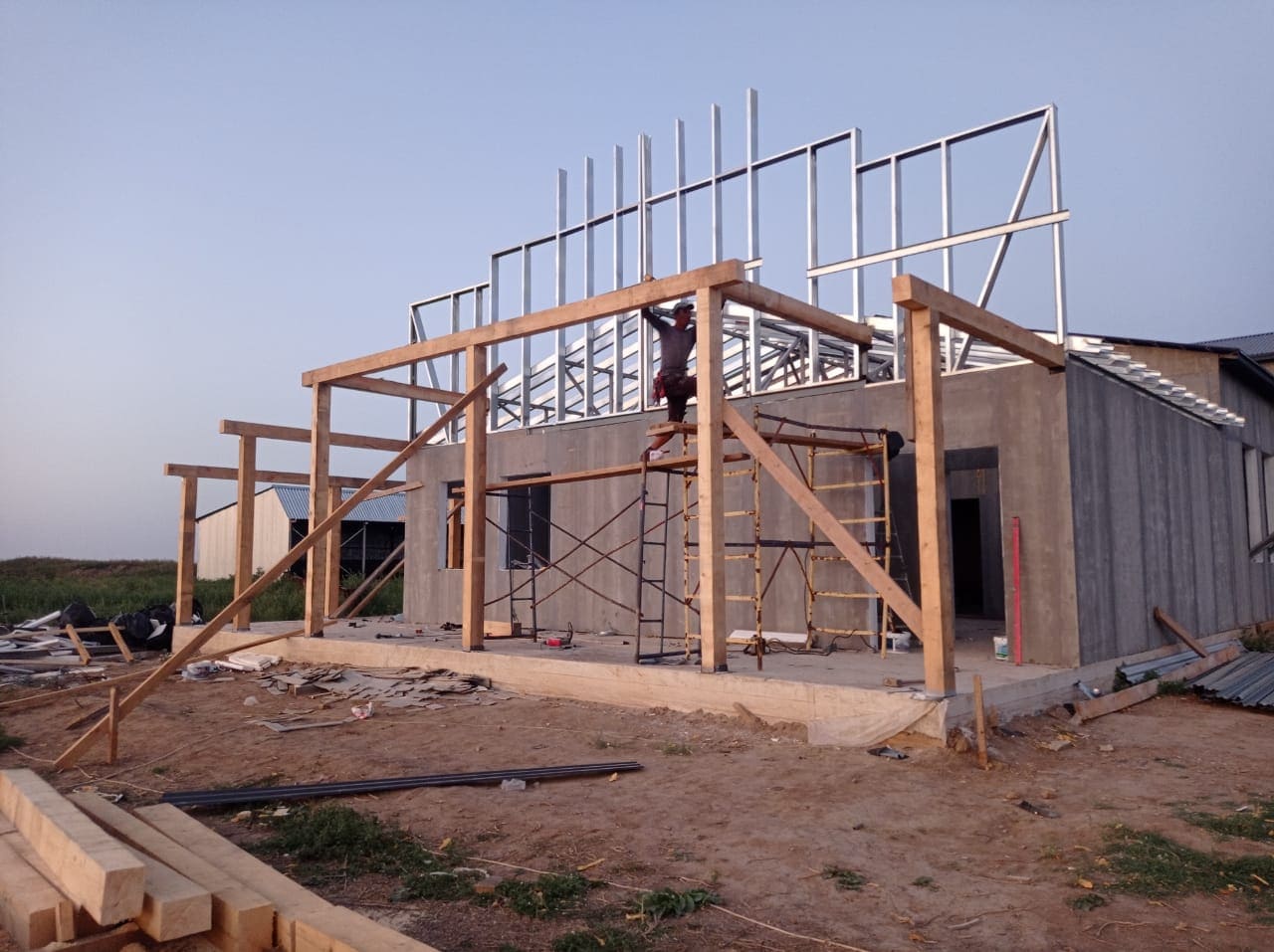 Кровля может быть построена из бруса 150х50мм или SIP панелей. В качестве кровельного материала можно использовать: металлочерепицу, битумную и керамическую черепицу. Также производим кровельные шовные сэндвич-панели.