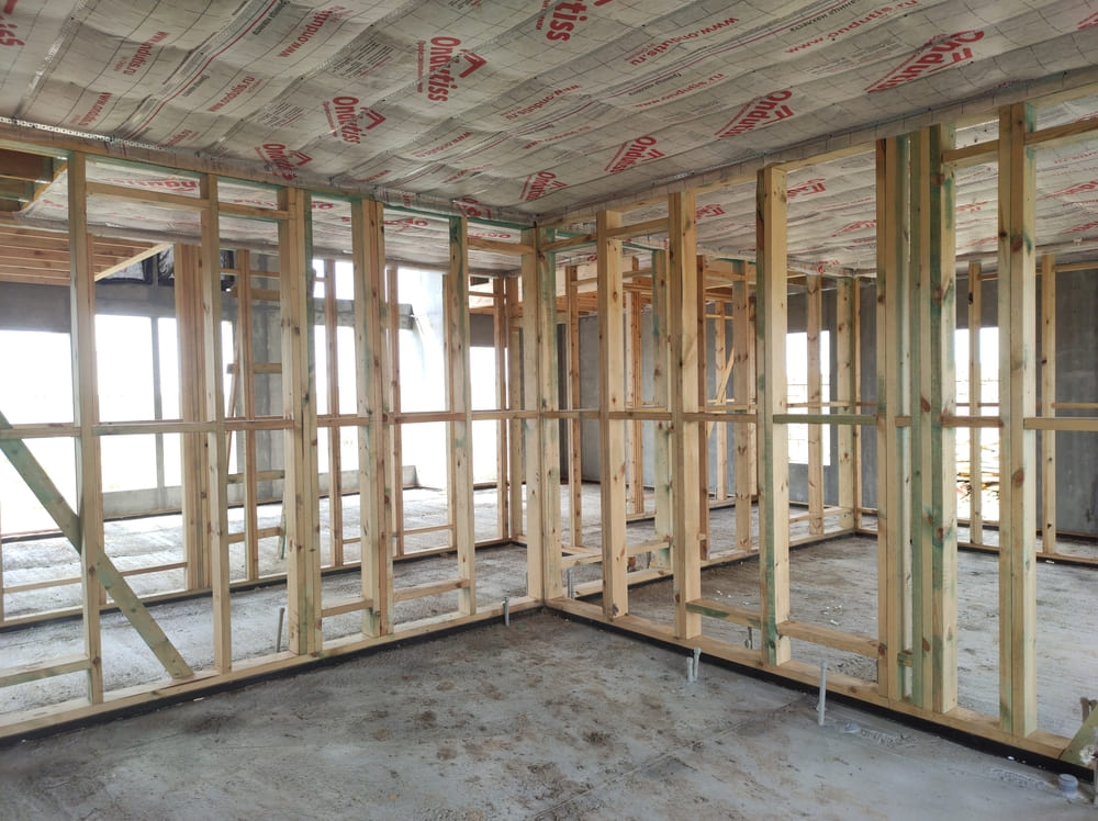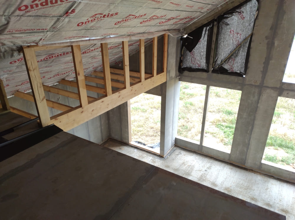 Ростверк изготовлен из калиброванного клееного бруса и защищен снаружи цементно-стружечной плитой