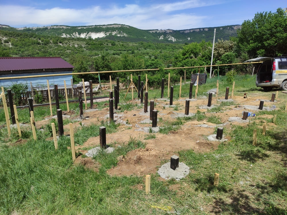 Ростверк изготовлен из калиброванного клееного бруса и защищен снаружи цементно-стружечной плитой