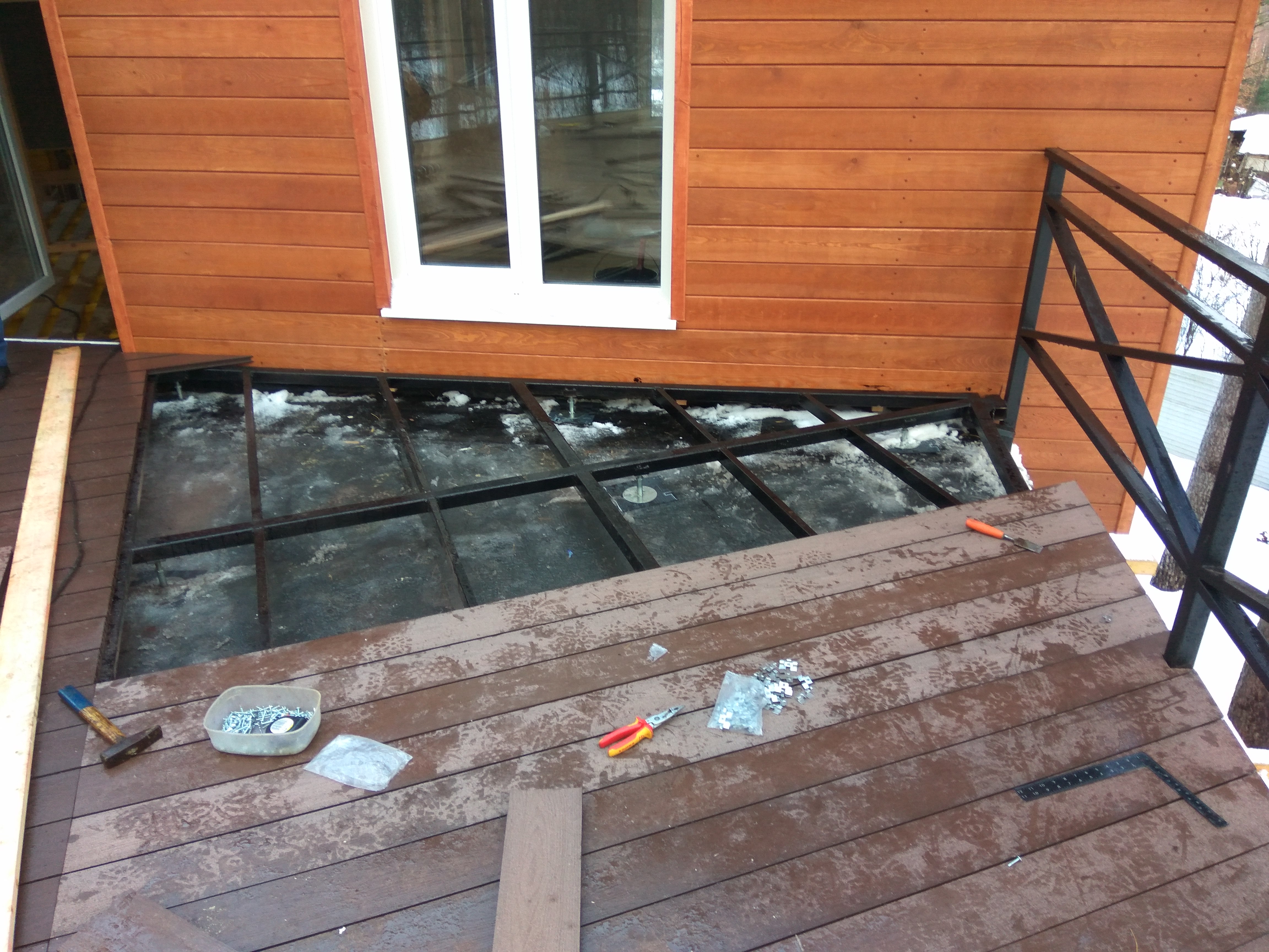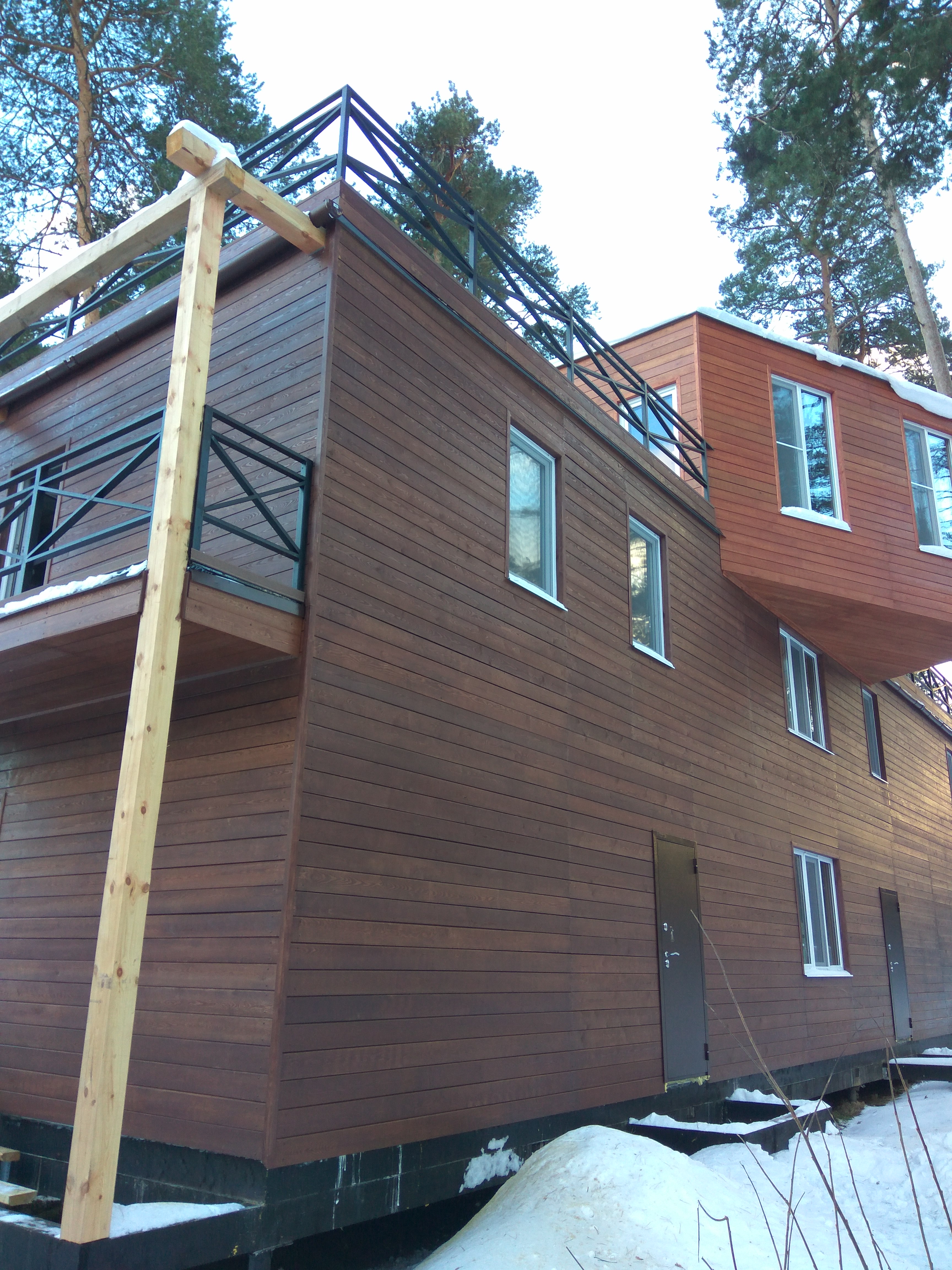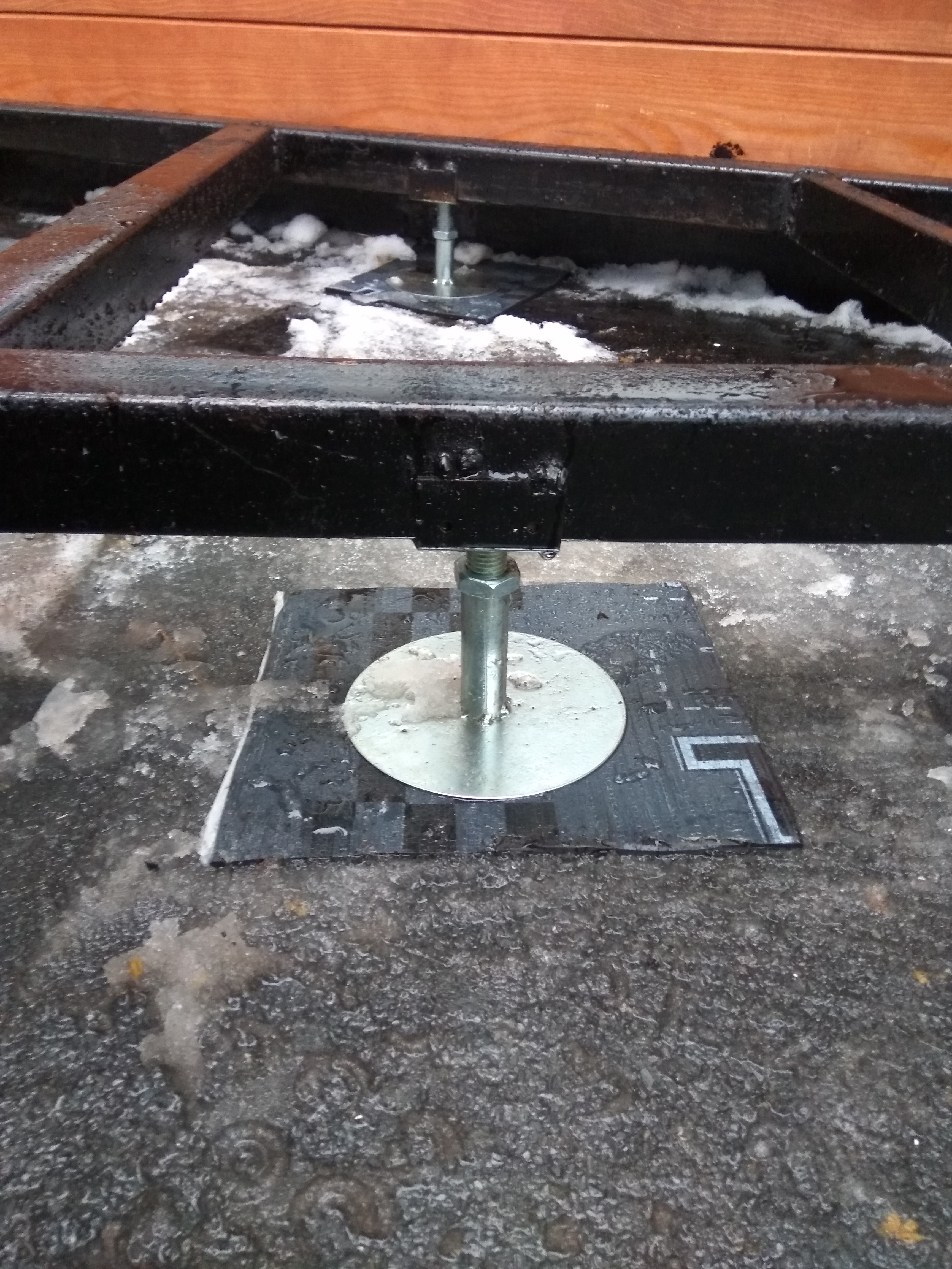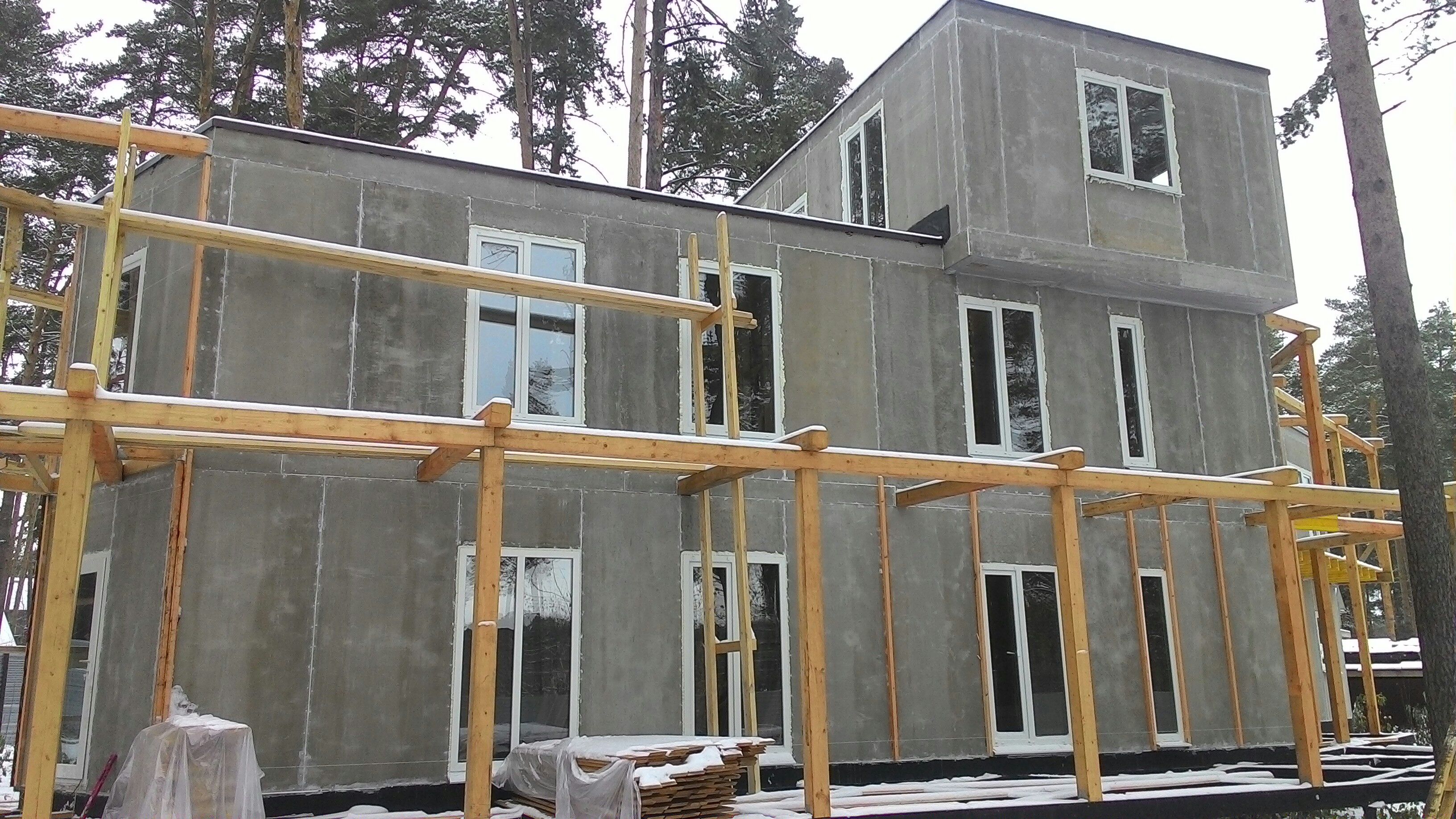 Ростверк изготовлен из калиброванного клееного бруса и защищен снаружи цементно-стружечной плитой