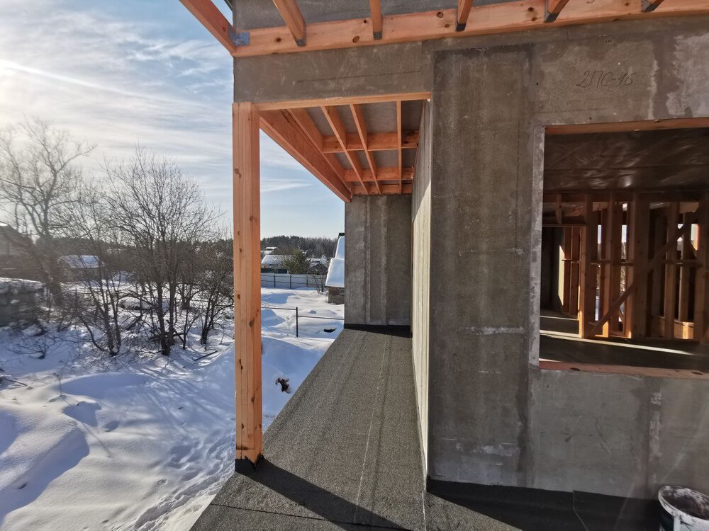 Ростверк изготовлен из калиброванного клееного бруса и защищен снаружи цементно-стружечной плитой
