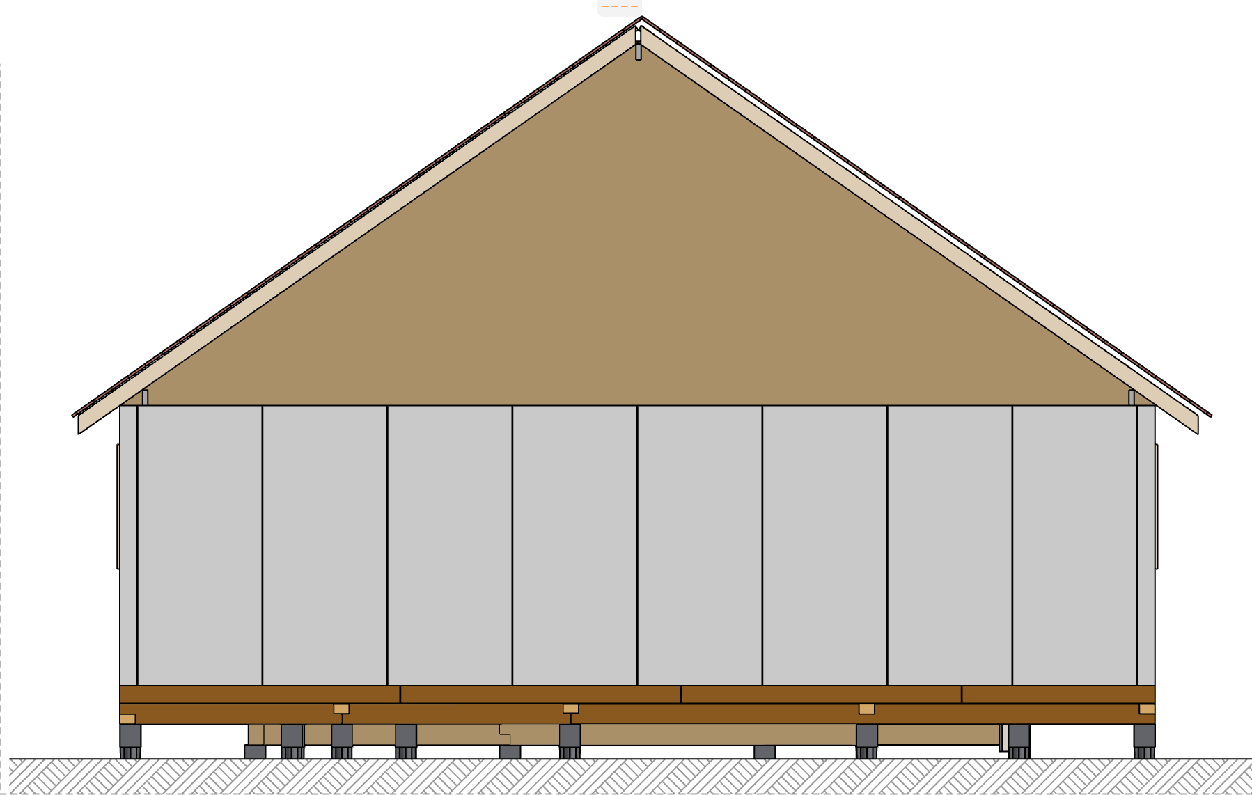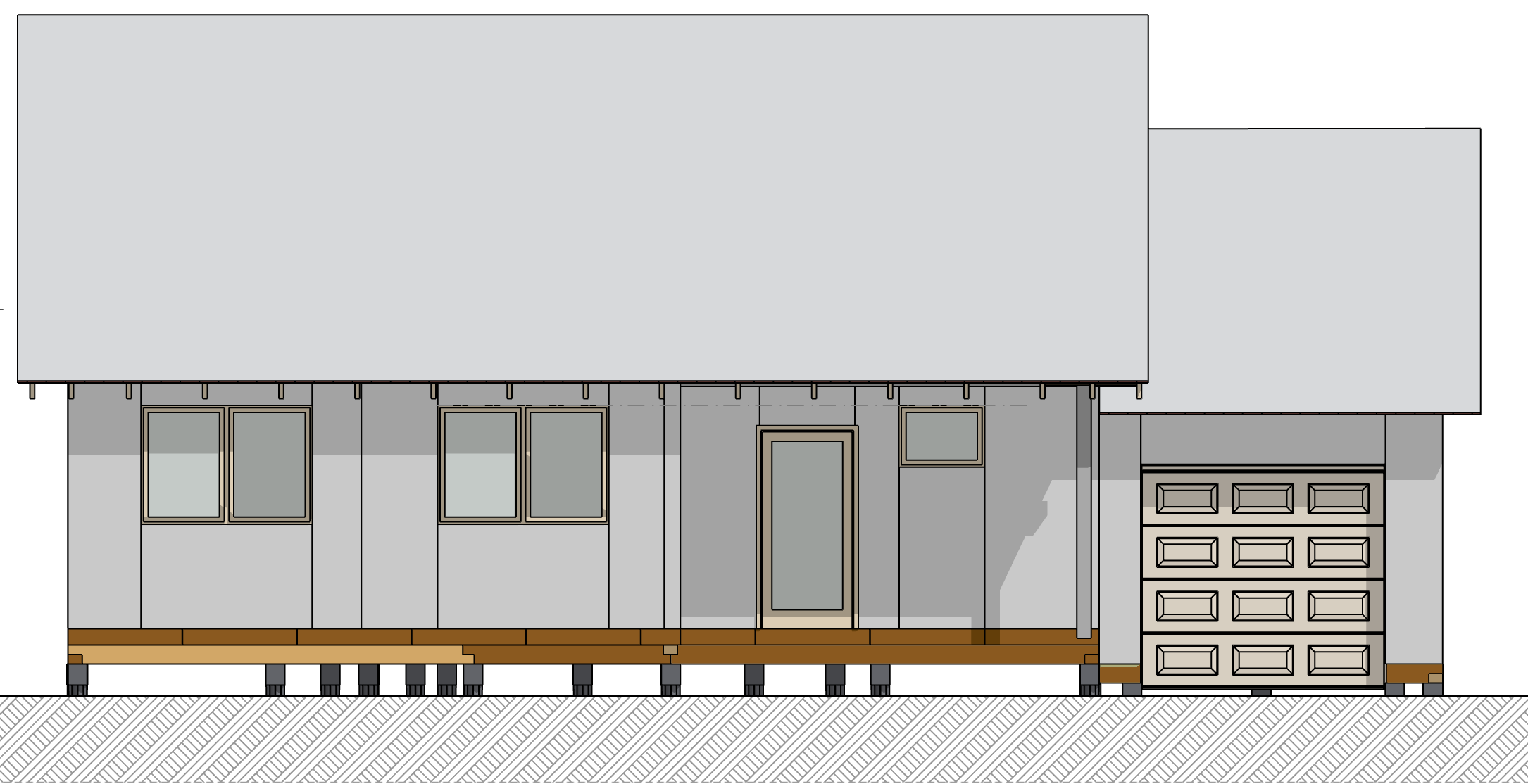 Ростверк изготовлен из калиброванного клееного бруса и защищен снаружи цементно-стружечной плитой