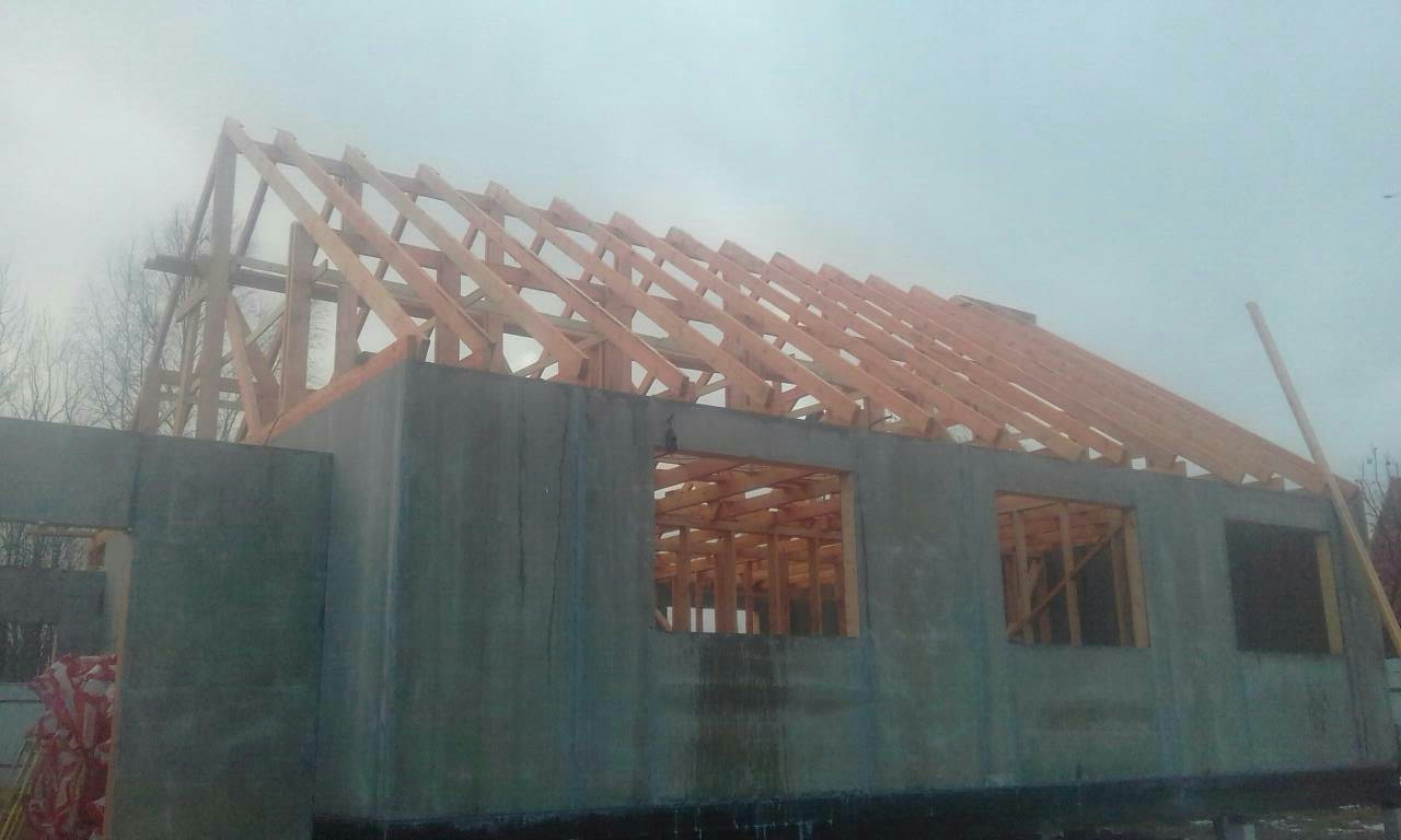 Кровля может быть построена из бруса 150х50мм или SIP панелей. В качестве кровельного материала можно использовать: металлочерепицу, битумную и керамическую черепицу. Также производим кровельные шовные сэндвич-панели.
