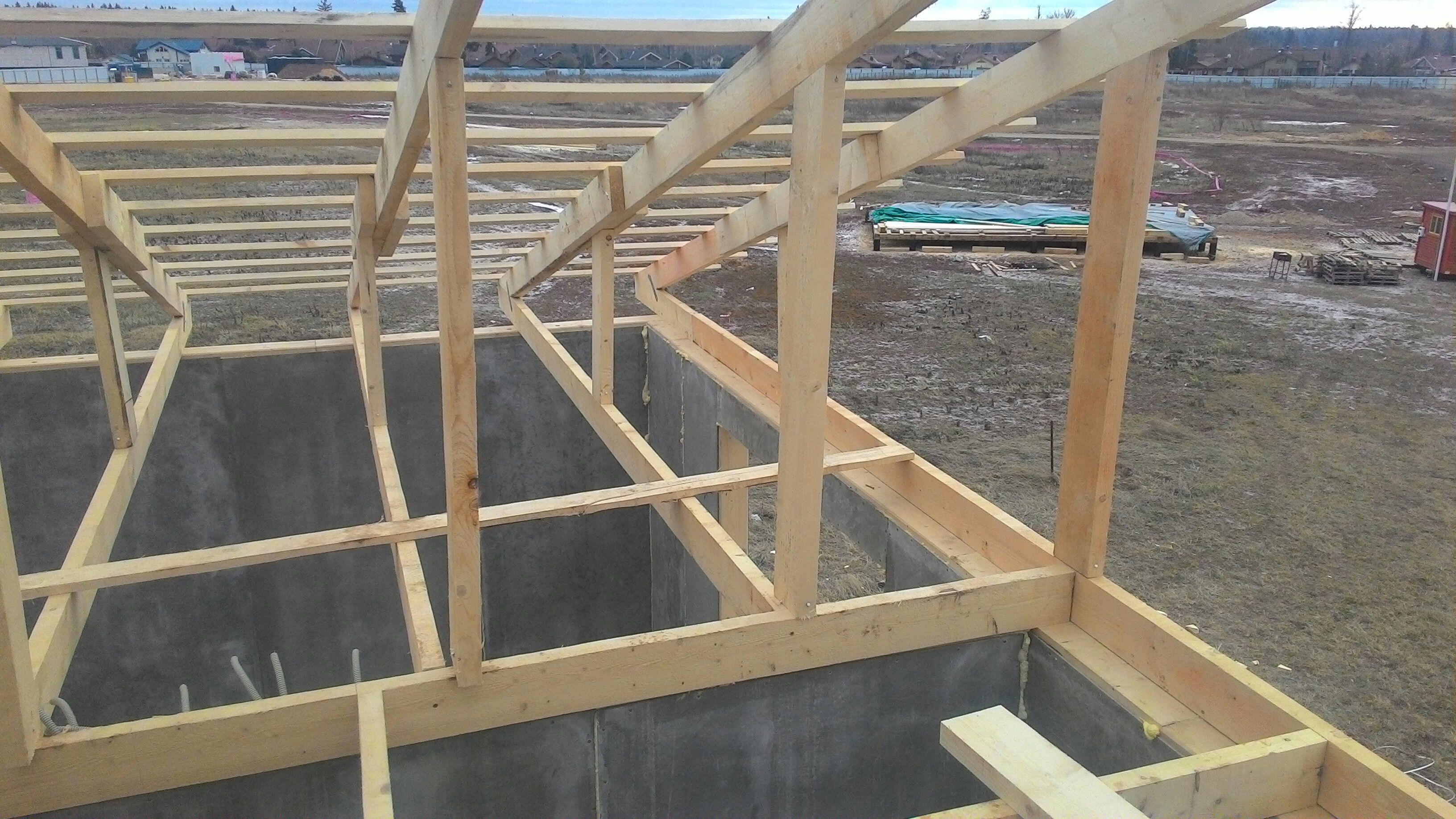 Ростверк изготовлен из калиброванного клееного бруса и защищен снаружи цементно-стружечной плитой