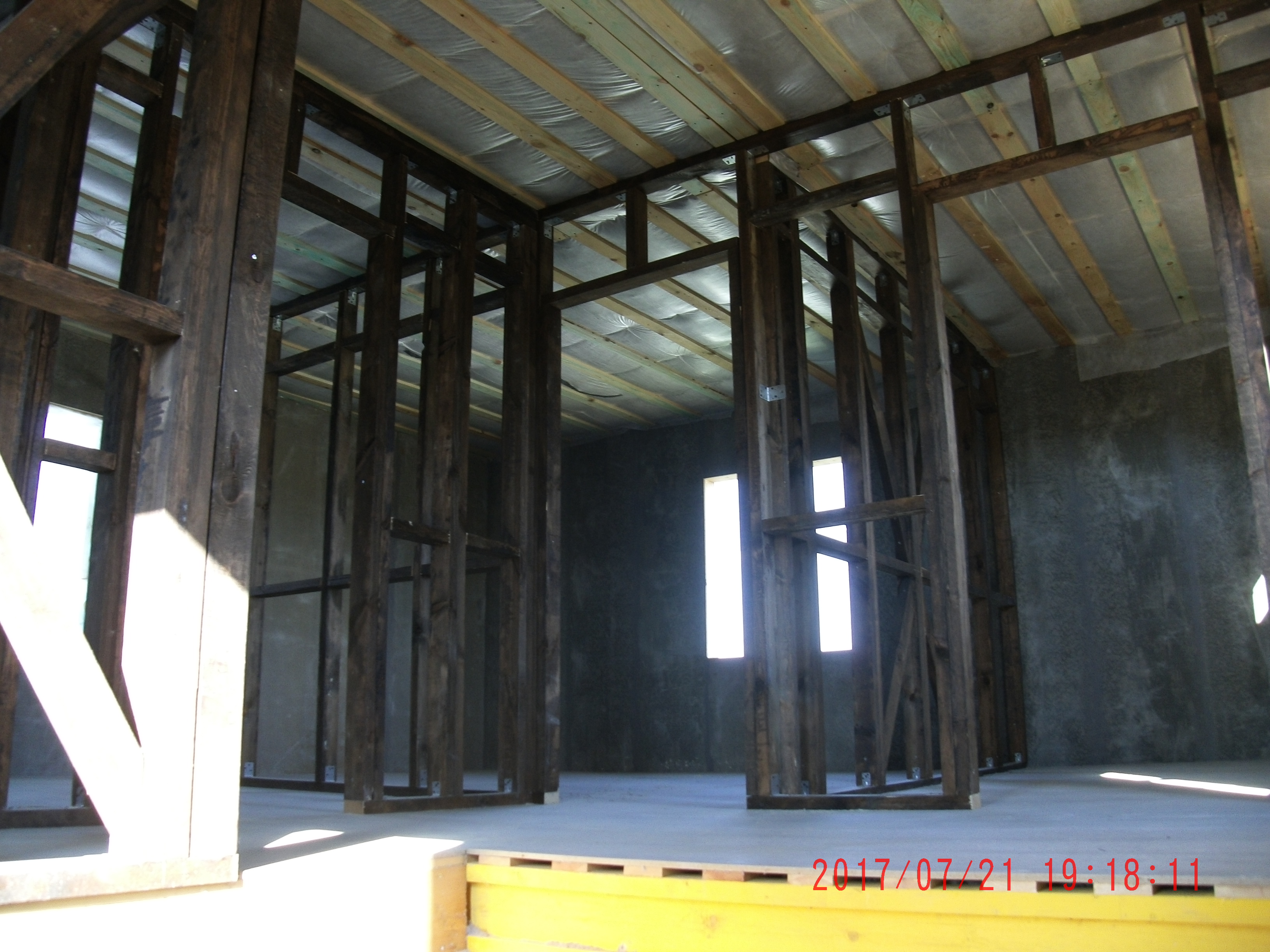 Ростверк изготовлен из калиброванного клееного бруса и защищен снаружи цементно-стружечной плитой
