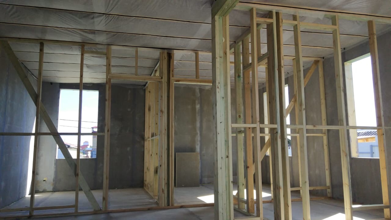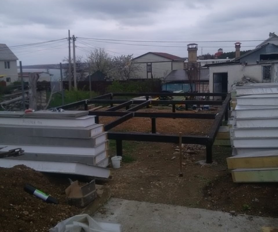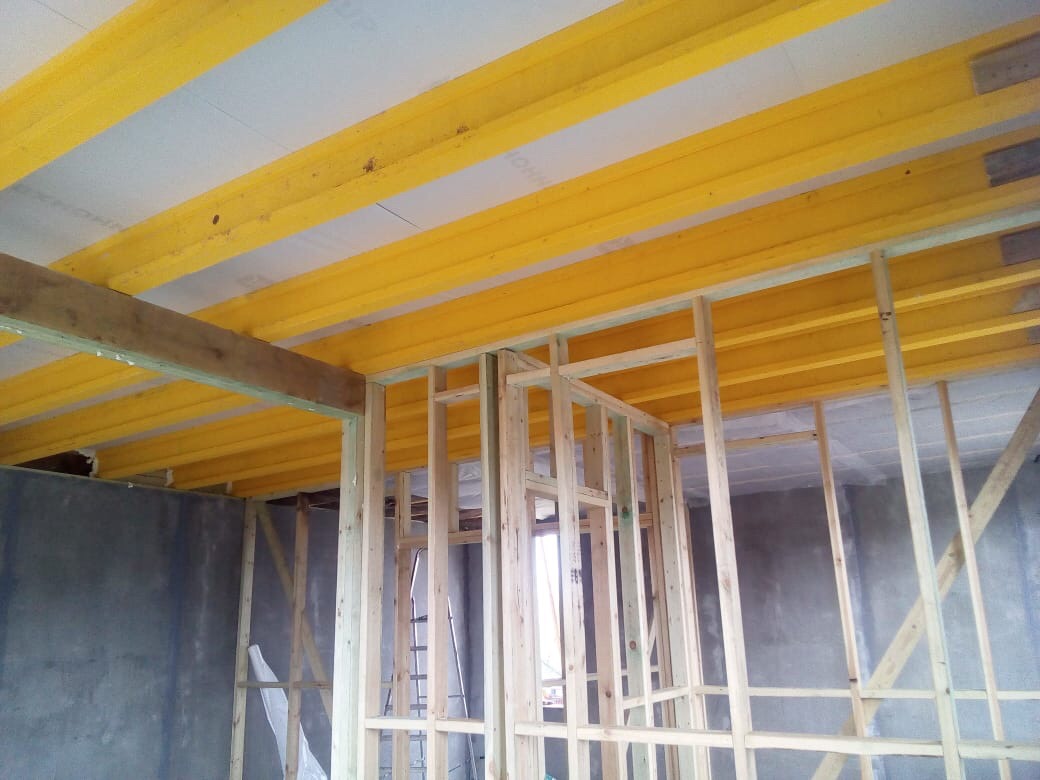 Ростверк изготовлен из калиброванного клееного бруса и защищен снаружи цементно-стружечной плитой