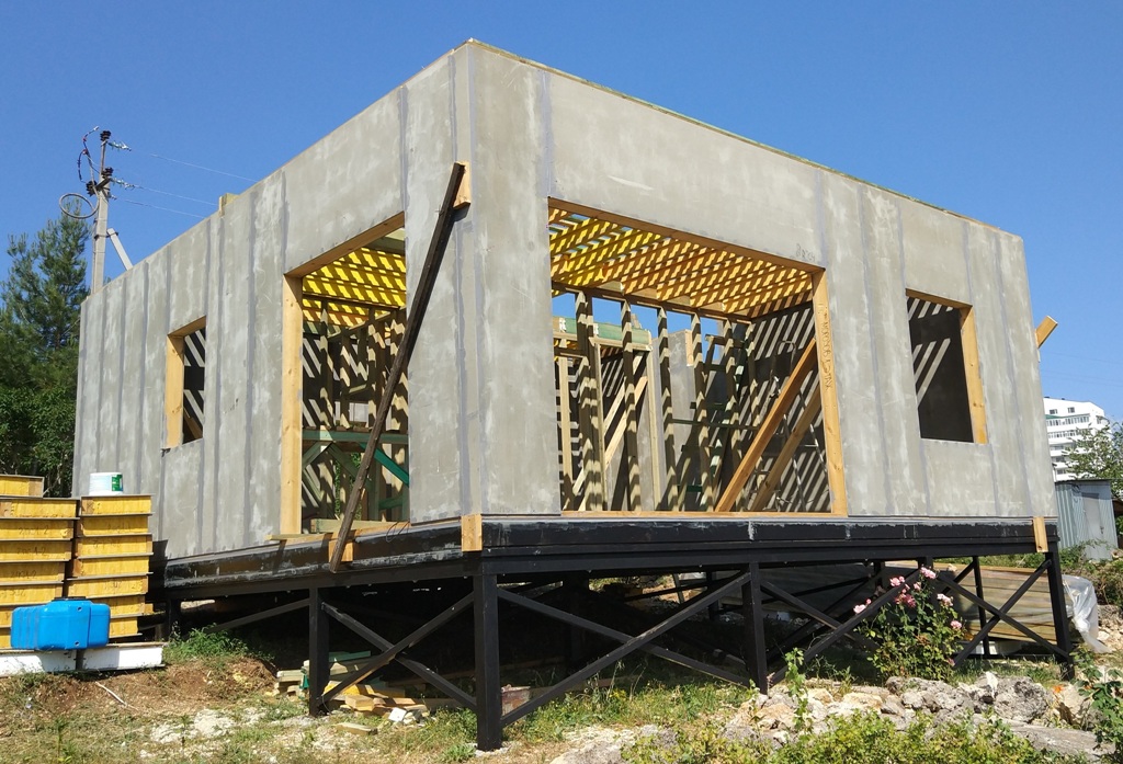 Ростверк изготовлен из калиброванного клееного бруса и защищен снаружи цементно-стружечной плитой