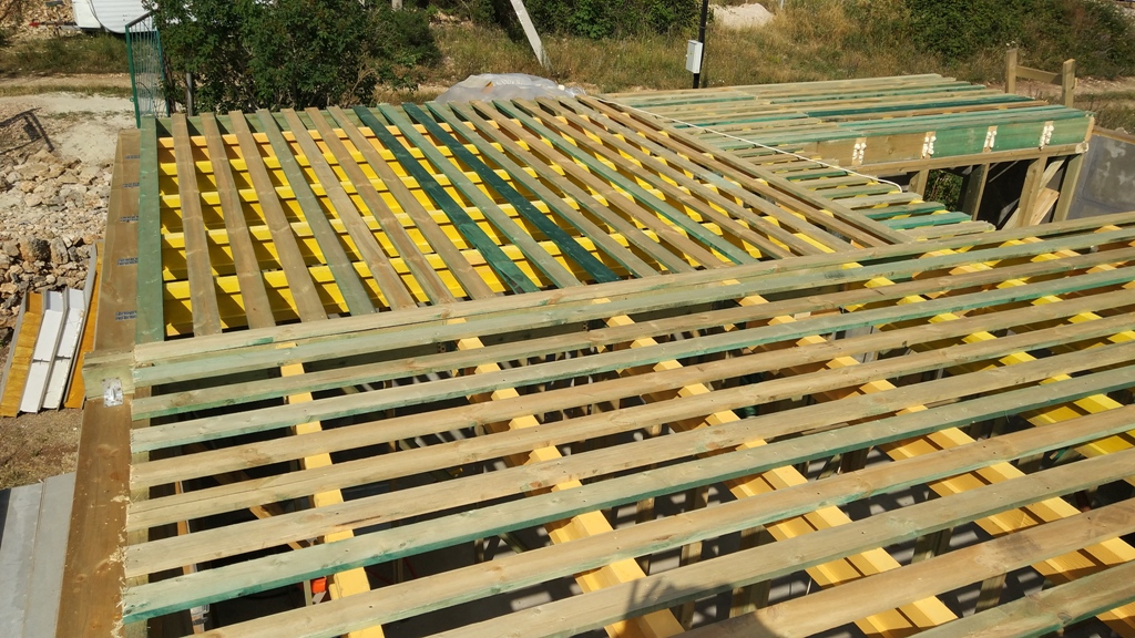 Кровля может быть построена из бруса 150х50мм или SIP панелей. В качестве кровельного материала можно использовать: металлочерепицу, битумную и керамическую черепицу. Также производим кровельные шовные сэндвич-панели.