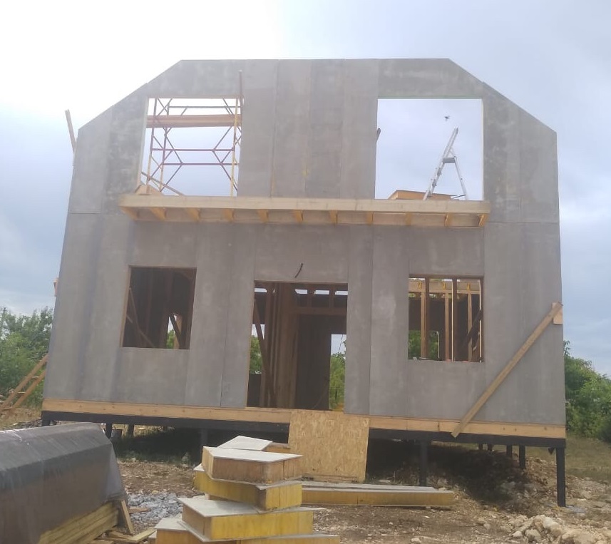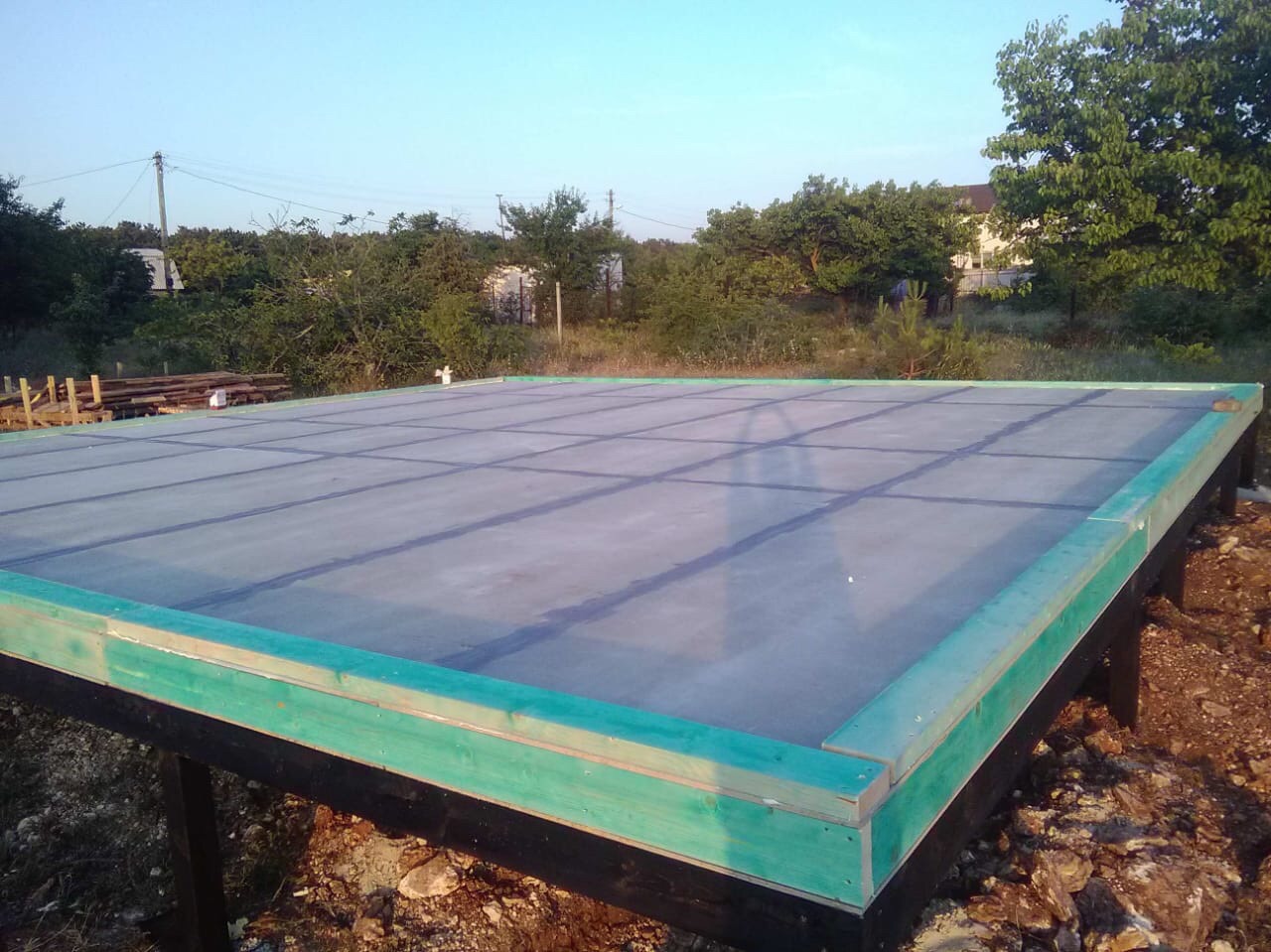 Ростверк изготовлен из калиброванного клееного бруса и защищен снаружи цементно-стружечной плитой