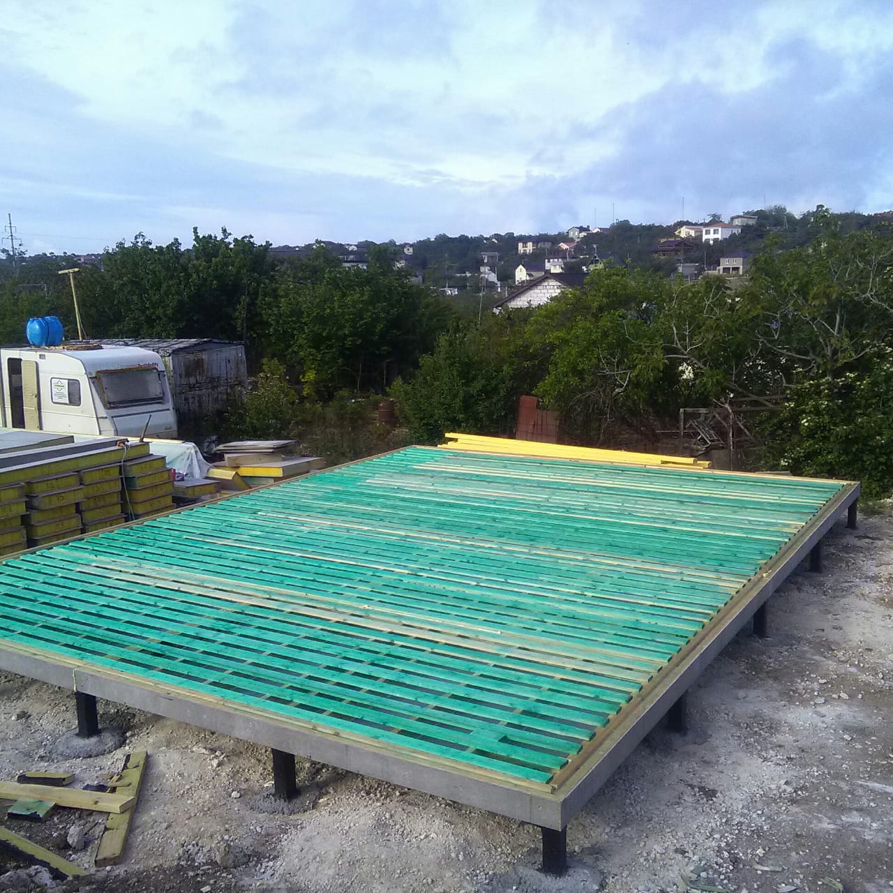 Ростверк изготовлен из калиброванного клееного бруса и защищен снаружи цементно-стружечной плитой