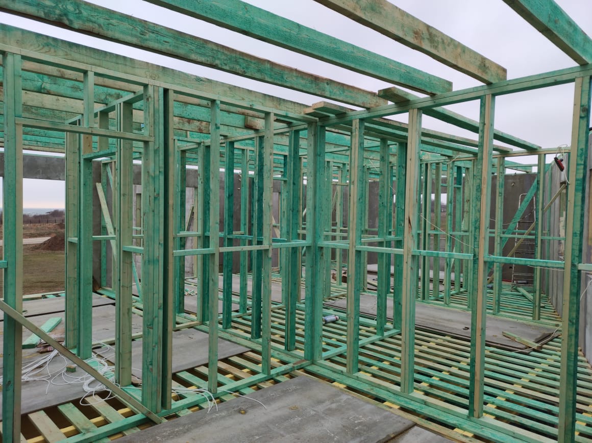 Ростверк изготовлен из калиброванного клееного бруса и защищен снаружи цементно-стружечной плитой