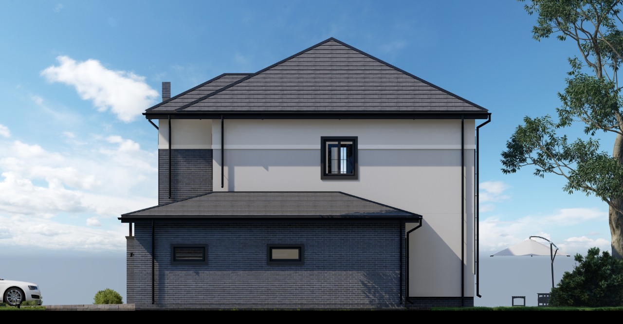 • Плоская или скатная утепленная кровля (пароизоляционная пленка, утеплитель вата на основе стекловолокна или базальта, гидро-ветрозащитная мембрана) с покрытием из металлочерепицы, полимерной мембраны или гибкой черепицы. (цена отличается от выбранного типа) (Ширина карнизного свеса от 30 см. Водосточная система в стоимость не входит