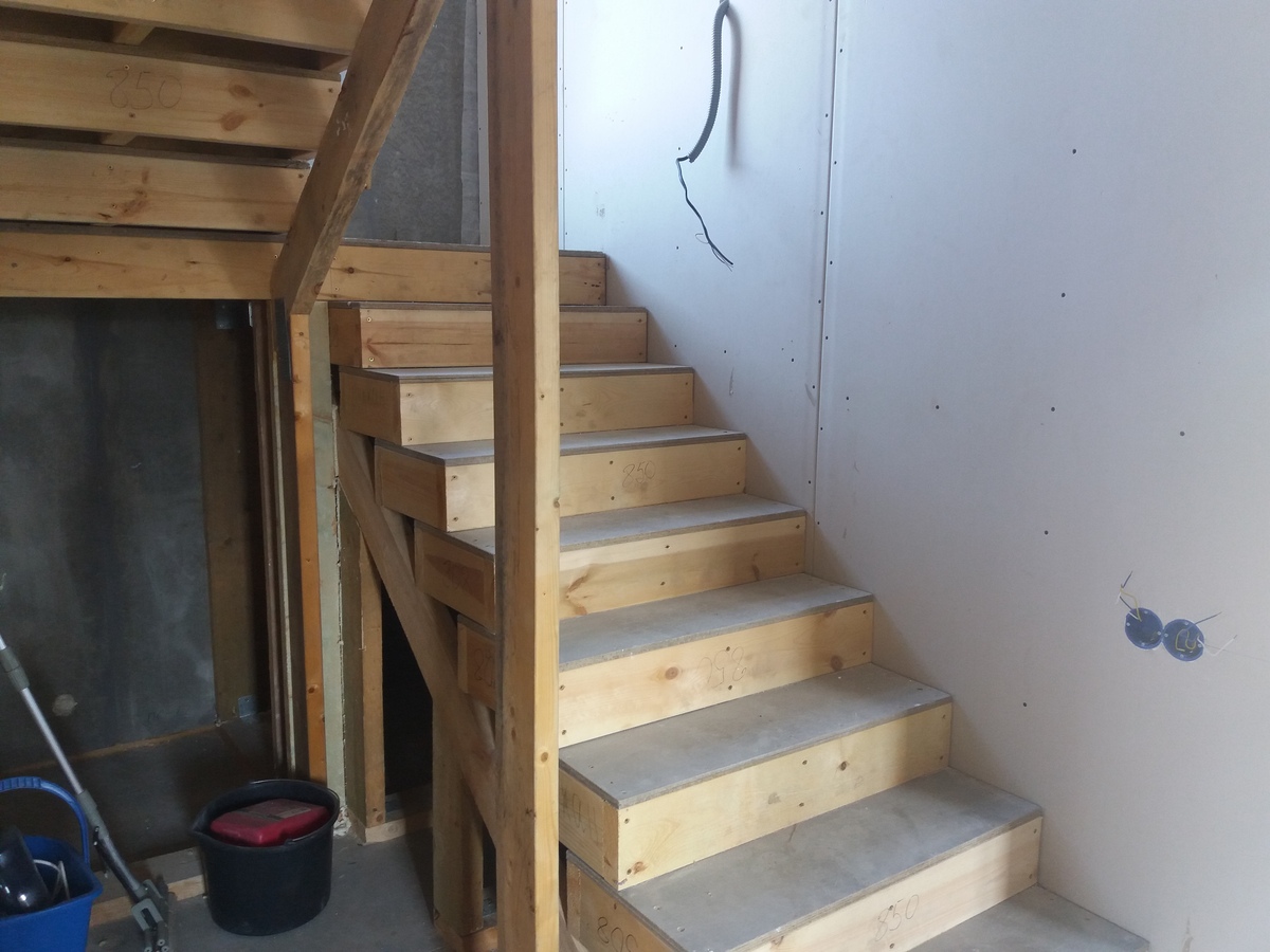 из СИП панелей из ЦСП размером 2700*1200*168 мм с антисептированным калиброванным пиломатериалом камерной сушки (46*140 мм). Монтаж каркасов несущих перегородок из пиломатериала 38*89 мм (76*89 мм).