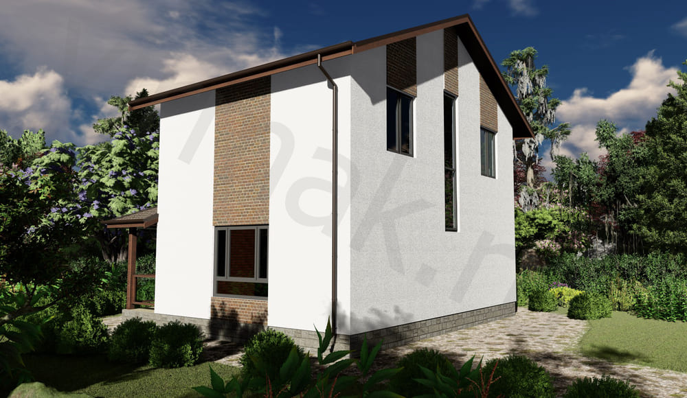 • Плоская или скатная утепленная кровля (пароизоляционная пленка, утеплитель вата на основе стекловолокна или базальта, гидро-ветрозащитная мембрана) с покрытием из металлочерепицы, полимерной мембраны или гибкой черепицы. (цена отличается от выбранного типа) (Ширина карнизного свеса от 30 см. Водосточная система в стоимость не входит