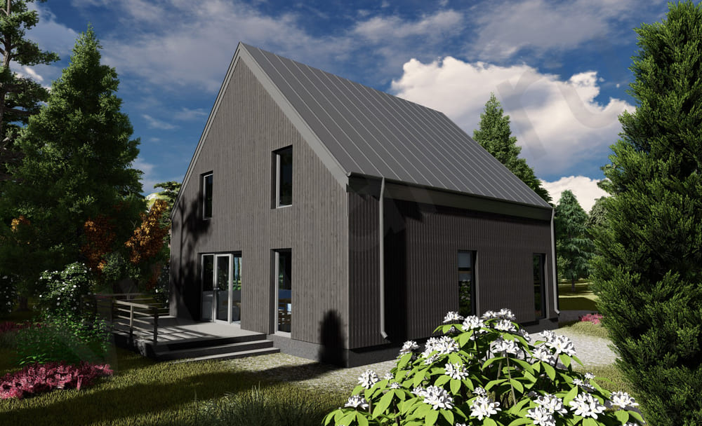 • Плоская или скатная утепленная кровля (пароизоляционная пленка, утеплитель вата на основе стекловолокна или базальта, гидро-ветрозащитная мембрана) с покрытием из металлочерепицы, полимерной мембраны или гибкой черепицы. (цена отличается от выбранного типа) (Ширина карнизного свеса от 30 см. Водосточная система в стоимость не входит